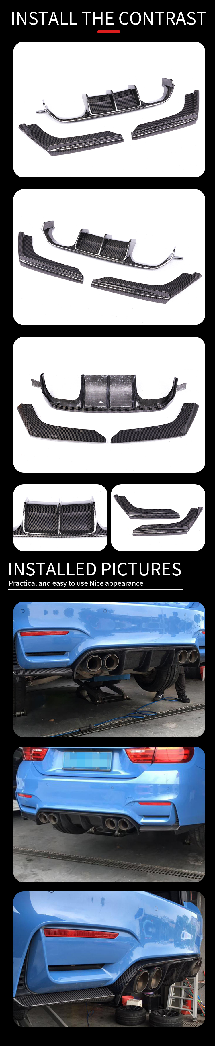 BMW F80 F82 M3 M4 3D Style Carbon Rear Bumper Diffuser